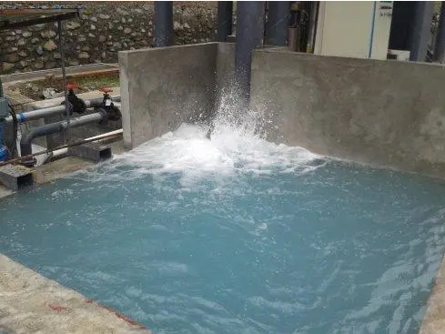 因為廢水中含有大量石粉、殘渣等物質(zhì),濁度高,且較難通過自然沉淀進(jìn)行處理。所以,須使用石材廢水脫色劑等加速絮凝沉淀。石材廢水通過廠區(qū)內(nèi)的管渠收集后,進(jìn)入調(diào)節(jié)池,以均質(zhì)均量,投加脫色劑和助凝劑后,在反應(yīng)池內(nèi)反應(yīng)生成礬花,通過沉淀池的沉淀,大部分懸浮物沉至池底,上清液進(jìn)入清水池,通過回用水系統(tǒng)進(jìn)入生產(chǎn)車間回用或達(dá)標(biāo)排放。